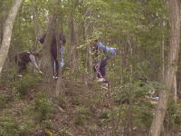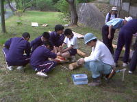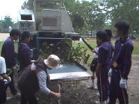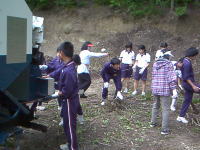 | 作業前の打ち合わせ | 剪定枝の破砕体験 | 他の班の女の子もお手伝い |