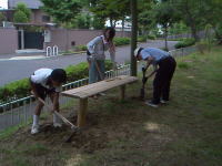 設置にも熱が入り見事なベンチが完成しました。これをきっかけに地元の公園に愛着がわけば私たちの狙い通りです。
